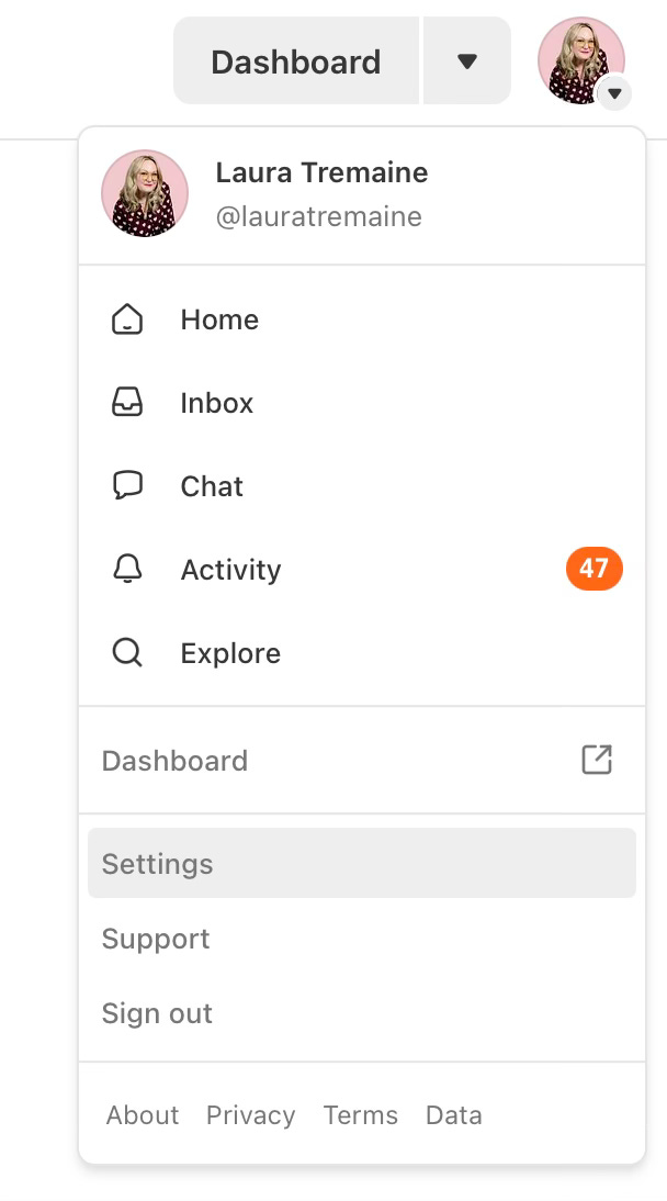 With any Substack subscription, you can choose if you’d prefer to receive the content via email, via push notifications on your phone, or have no notifications at all. To check your settings, go to your profile photo in the top right corner of the browser: