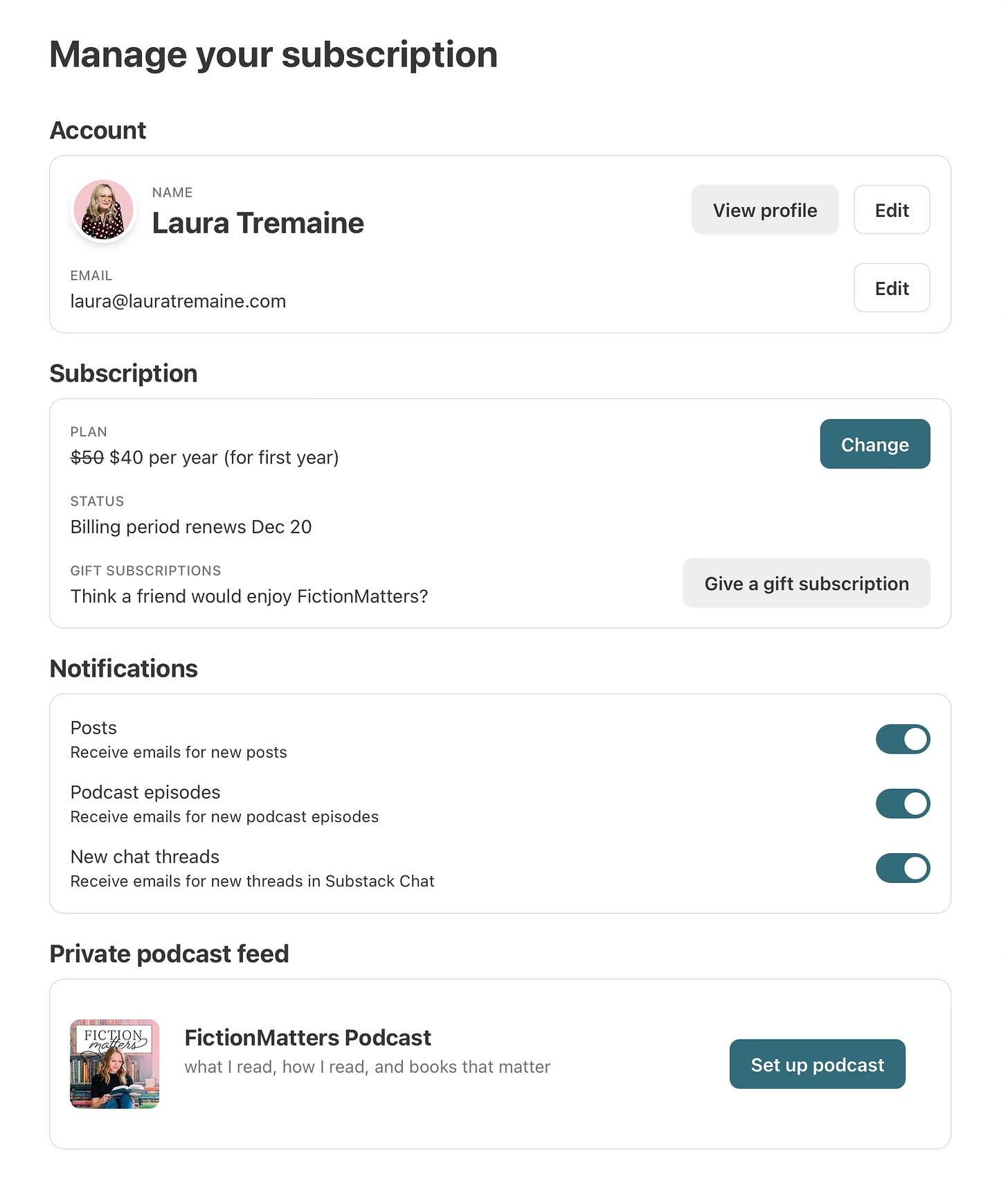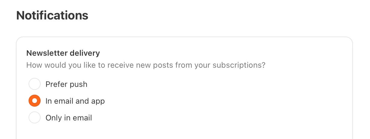 The Substack app is pretty awesome if you’re subscribing to multiple creators. You can change your settings for each subscription, determining if you get their posts via email, in the app only, or by mobile push notifications.