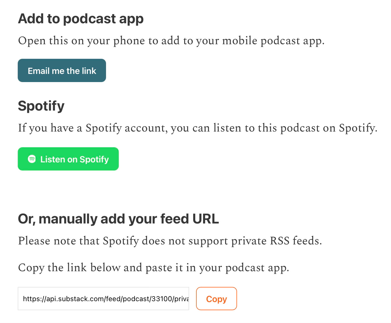 Podcast episodes published on Substack can be listened to in your regular podcast app and will show up there just like any other podcast subscription, even if the podcast is “members-only” content. (details on that below)