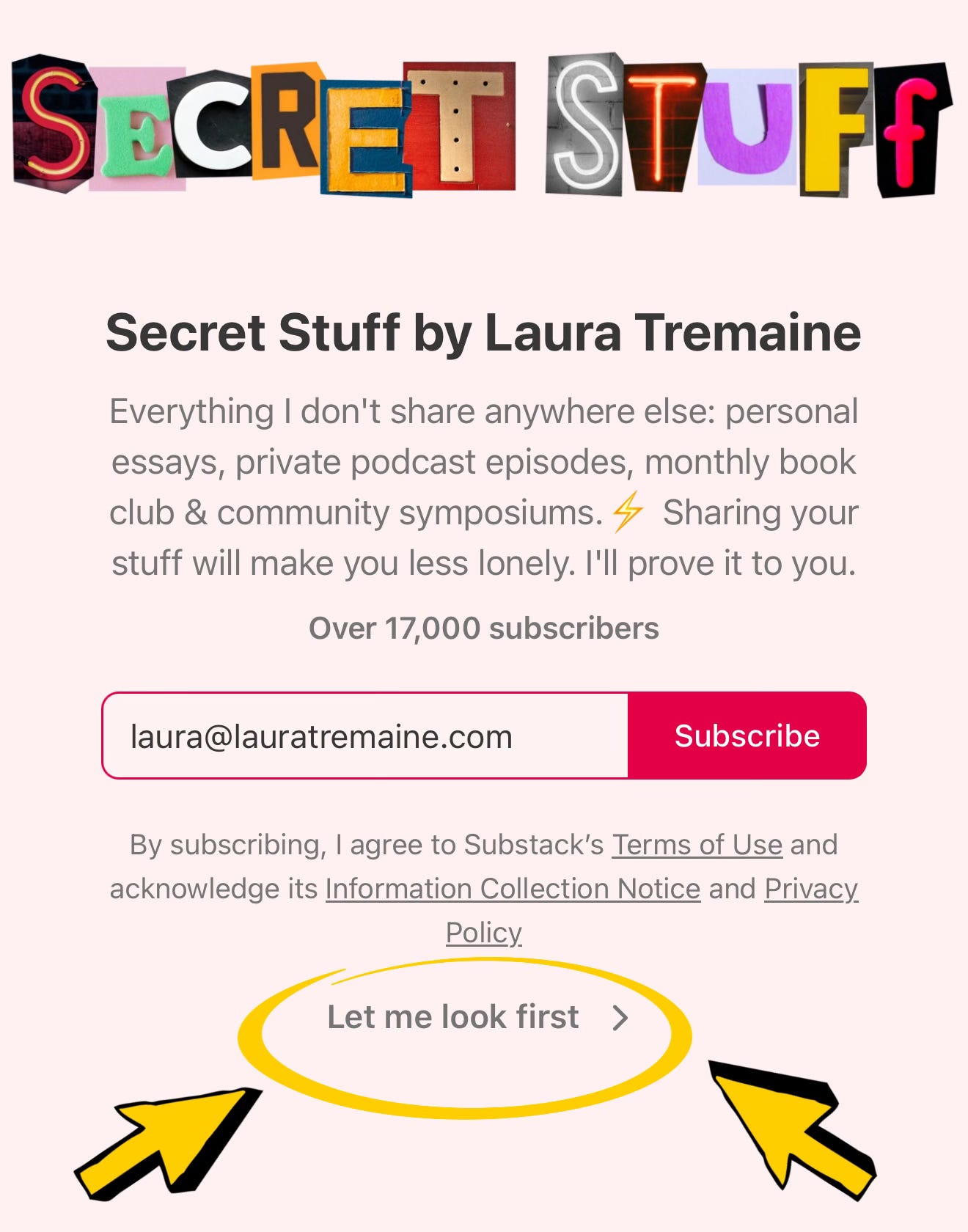 If you’re new to Secret Stuff, I hope you’ll find a welcoming, warm, funny, and thoughtful group of people here. Which is a wonderful thing on the internet.